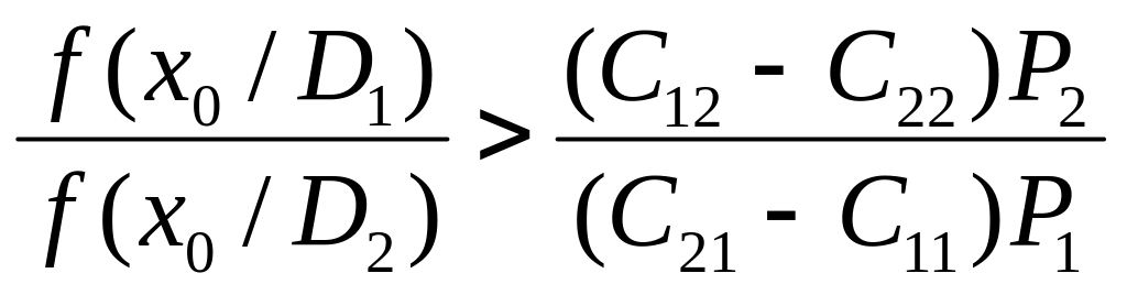 Величина х, яка представляється для розпізнавання, є випадковою і тому рівності (9.1) і (9.2) представляють собою середні значення (математичне очікування) ризику.
