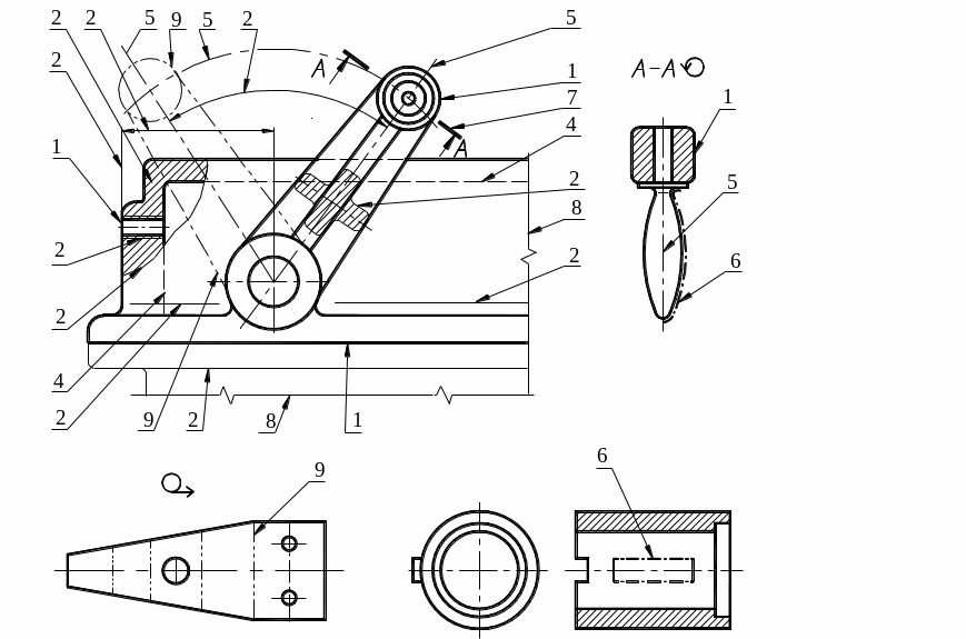 Линии, обозначающие поверхности, подлежащие термообработке или покрытию Линии для изображения элементов, расположенных перед секущей плоскостью (наложенная проекция) |
