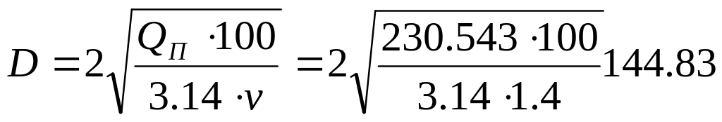 Приймаємо трубу діаметром 150мм.