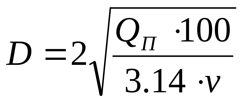 Діаметр водогону визначається від витрат води і розрахункової швидкості. Для труб великого діаметру розрахункова швидкість приймається 1.4 м/с. Діаметр труб водогінної напірної зовнішньої мережі визначається за формулою, мм: