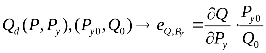 Знаходження дугової еластичності попиту на товар за ціною іншого товару ( ) на основі неперервної функції попиту .