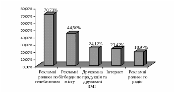 Було проаналізовано основні канали інформації, через які розповсюджується соціальна реклама (див. рис. 3.20).