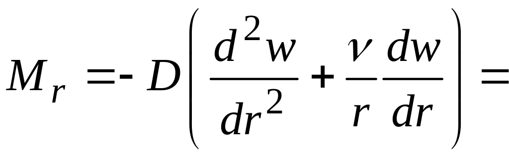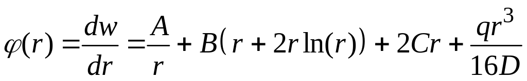 – використовуючи рівняння – , та отримані константи , записати рівняння прогинів та внутрішніх сил, побудувати їх епюри. При цьому визначити відповідні величини не менш ніж у 5 точках вздовж радіуса пластини;