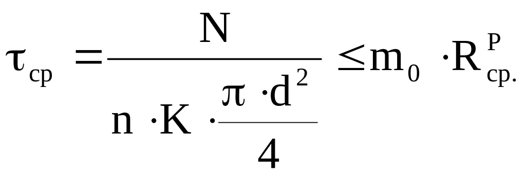 Для этого поверхности отверстий и стержней болтов обрабатываются по высоким классам точности и чистоты. В таких соединениях болты проверяются на срез и смятие по формулам: