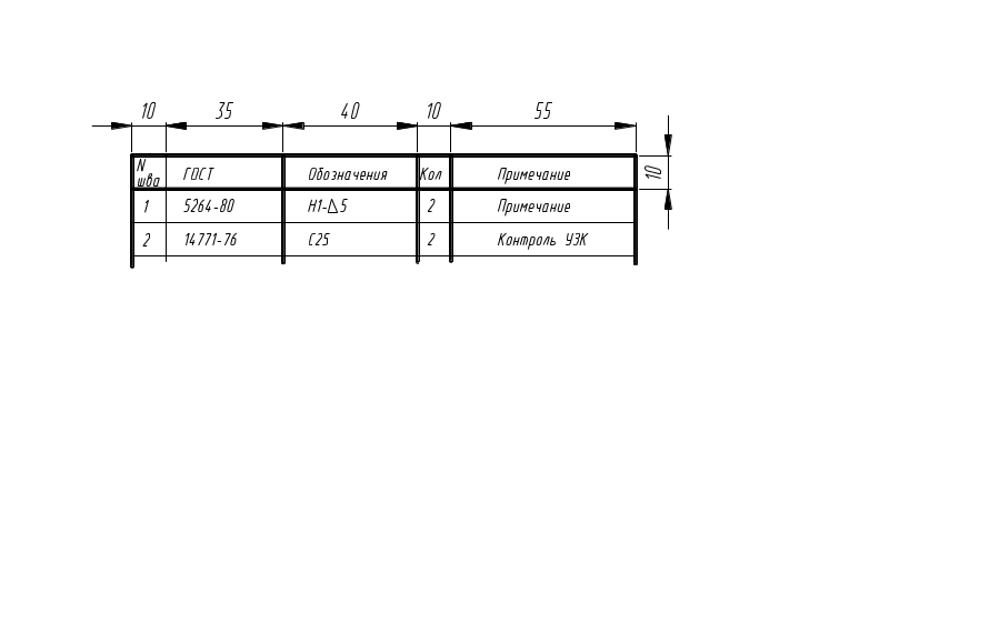 Рисунок 2.14 – Таблица сварных швов