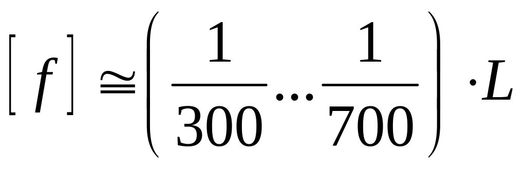 Для металлоконструкций пролетных строений кранов иногда решающим является не только прочность, но и жесткость. Количественно жесткость характеризуется прогибом в средине пролета при установке тележки с номинальным грузом по середине. Этот прогиб определяется нормативными документами в зависимости от режима работы крана [f].