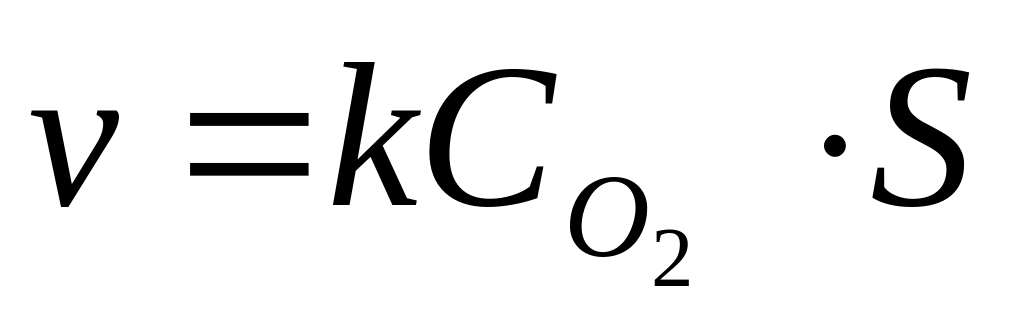 Реакции в гетерогенной системе осуществляются на поверхности раздела между фазами. Поэтому скорость гетерогенных реакций при постоянной температуре зависит не только от концентрации веществ, но и от площади поверхности раздела. Так, для реакции: