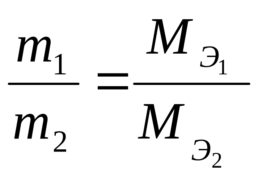 Из закона эквивалентов следует, что массы реагирующих друг с другом веществ, а также массы продуктов реакции относятся друг к другу как молярные массы их эквивалентов: