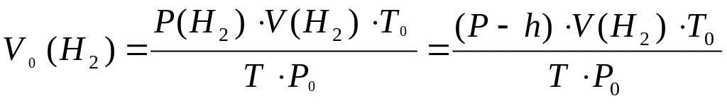 4.2.1.3 Привести объем выделившегося водорода к нормальным условиям (Р0 -760 мм рт.ст., Т0 = 273 К), используя объединенное уравнение газового состояния: