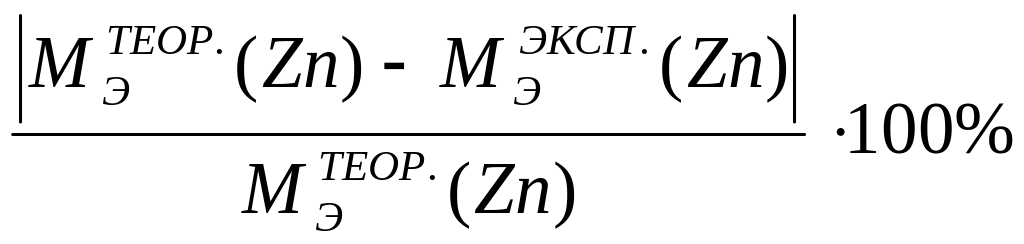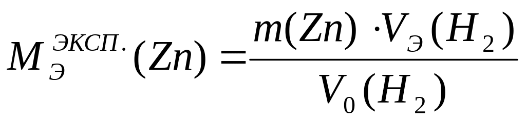 4.2.1.4 Рассчитать экспериментальное значение молярной массы эквивалента цинка в г/моль по закону эквивалентов в соответствии с формулой: