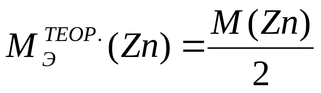 4.2.1.5 Рассчитать теоретическое значение молярной массы эквивалента цинка, зная молярную массу цинка и эквивалентное число z, численно равное числу электронов, отданных цинком в ходе окислительно-восстановительной реакции с соляной кислотой.