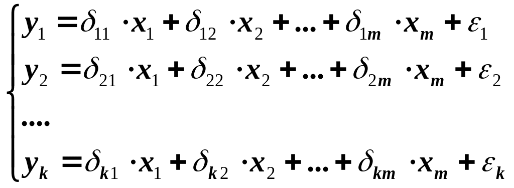 Параметры δij называются приведёнными коэффициентами. Приведённая форма строится для того, чтобы по МНК – оценкам её параметров определить оценки структурных коэффициентов. Зная оценки приведённых коэффициентов, можно определить параметры структурной формы модели, но только тогда, когда модель является идентифицированной.