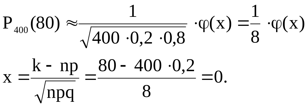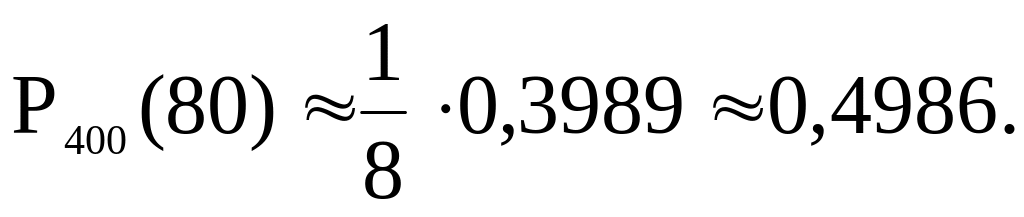 Пример. Найти вероятность того, что событие А наступит 80 раз в 400 испытаниях, если вероятность появления этого события в каждом испытании равна 0,2.