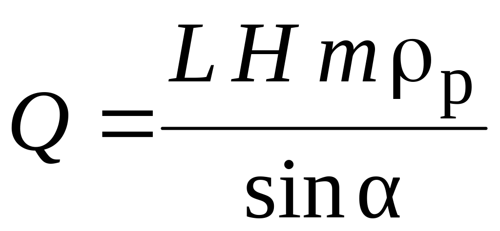 где S – площадь месторождения, м2; m – нормальная мощность рудного тела, м; р – плотность руды в массиве, т/м3; L – длина рудного тела по простиранию, м; H – вертикальная высота рудного тела, м;  – угол падения рудного тела, град.