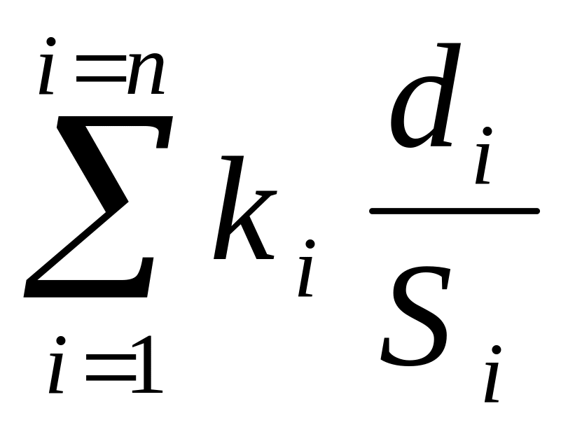где S – горизонтальная площадь месторождения, тыс. м2; Ки – коэффициент использования рудной площади; ki – доля применяемых систем разработки в общем объеме добычи руды рудником, доли ед.; di –производительность блока или панели в зависимости от применяемой системы разработки, т/год; Si – площадь блока или панели в очистной выемке, в зависимости от применяемой системы разработки, тыс. м2; n – число применяемых на руднике систем разработки.