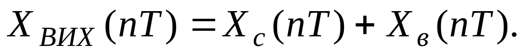 Як уже відзначалося, на практиці часто обмежуються визначенням дискретної функції XВИХ(n) на виході системи. Це рішення можна одержати, наприклад, з формули (14.4) у вигляді суми вільної і змушеної складової: