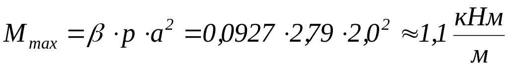 Для выбранной расчетной схемы определяем наибольший изгибающий момент