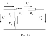 Для зручності розрахунку і порівняння параметрів, які характеризують процеси в трансформаторі, застосовують схеми заміщення. Найпоширеніша – спрощена Г- подібна схема заміщення показана на рис.1.2.