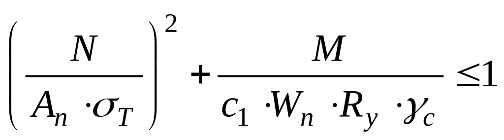 При конструюванні, знаючи несприятливий вплив згинального моменту на стійкість, необхідно переріз орієнтувати так, щоб площина його найбільшої жорсткості співпадала чи була паралельна площині дії згинального моменту. При цьому не виключена можливість втрати стійкості у напрямку меншої жорсткості, тобто перпендикулярно до площини дії моменту. У цьому напрямку критичні напруження визначають як для центрово-стиснених елементів, оскільки згинальний момент у цій площині відсутній. Тоді перевірка матиме вигляд
