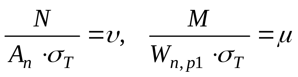 У загальному вигляді норми рекомендують таку форму запису умови міцності позацентрово-стиснених і стиснено-згинаних елементів при допущенні пластичних деформацій: