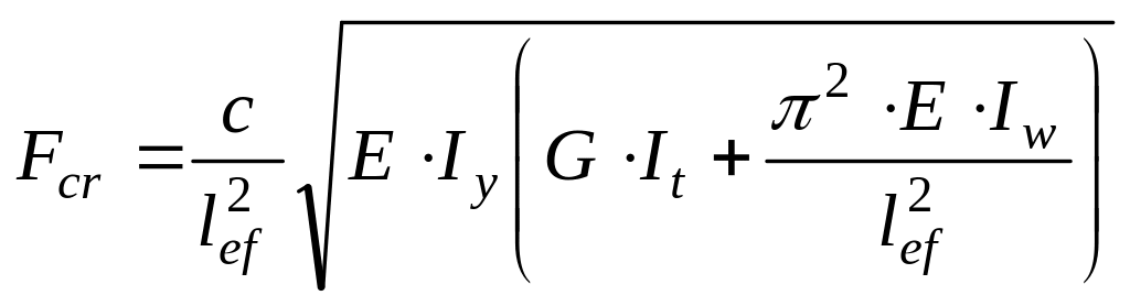 Елементи, що згинаються, можуть втратити несучу здатність внаслідок порушення стійкості. При досягненні критичного навантаження згин супроводжується закручуванням стержня (рис. 3.6) у площині, перпендикулярній до площини згину. Як наслідок у поясах балки з'являються пластичні деформації, що швидко поширюються на весь переріз, і елемент втрачає несучу здатність. Ейлер запропонував такий вираз для обчислення критичної сили: