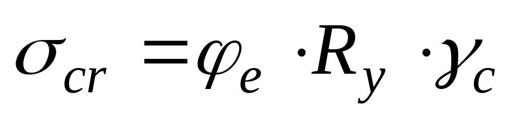 Як і в попередніх випадках, за рекомендаціями нормативних документів критичні напруження обчислюють, використовуючи значення розрахункового опору матеріалу: