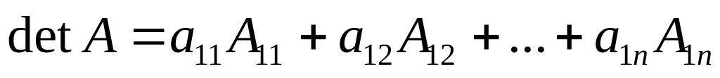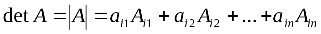 Теорема 6.1. Визначник матриці А дорівнює сумі добутків усіх елементів будь-якого його рядка на їх алгебраїчні доповнення.