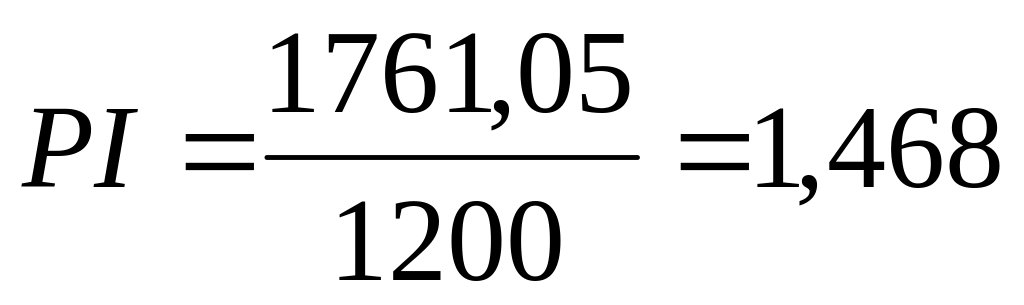Сумарне значення дисконтованого чистого грошового потоку (грошових надходжень) за п`ять років проекту: PV = 1761,05 тис. грн.