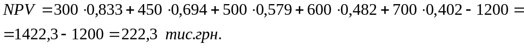 Оскільки 982,55<1200<1364,5 - проект окупиться на четвертому році: PP=4 роки.