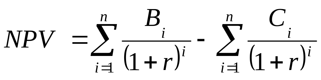 Метод розрахунку NPV передбачає співставлення величини інвестицій, що вкладаються у проект (IC), з загальною величиною чистих грошових надходжень протягом запланованого періоду, що наведені до теперішньої вартості (PV). Інвестиційні витрати також наводяться до теперішньої вартості