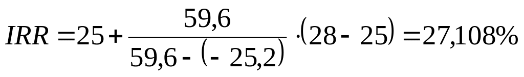 Оскільки при r = 28% маємо NPV< 0, для розрахунку IRR можемо скористатися формулою 1.4.