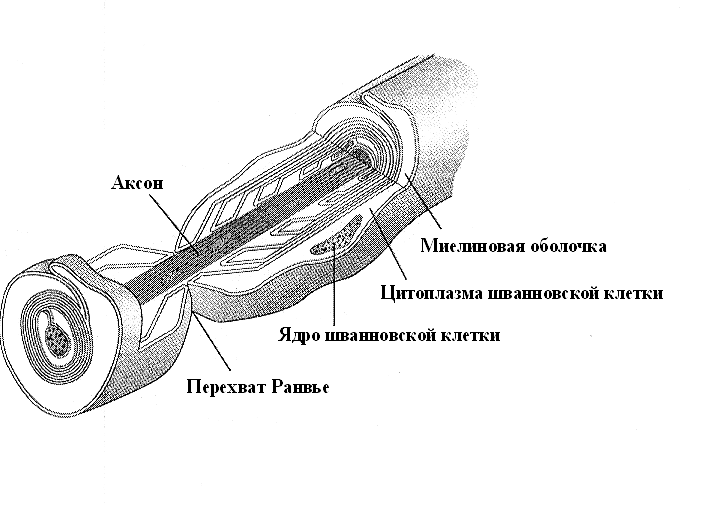Потенциалы действия в мякотных волокнах генерируются только в перехватах Ранвье. Поэтому возбуждение по миелинизированным нервным волокнам проводится сальтаторно (скачкообразно, лат. «saltus» – прыжок), «перепрыгивая» через участки покрытые миелином и распространяясь только по перехватам Ранвье. Такой механизм проведения возбуждения имеет два основных преимущества: большую скорость проведения ПД и малые затраты энергии.