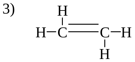 Виберіть формулу, що правильно відображає взаємне розташування в просторі атомів в молекулі етилену: