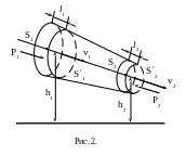 Нехай площі попе-речних перерізів трубки дорівнюють S1 і S2, а відповідні їм швидкості руху води і тиски – v1 i v2 та р1 i р2 (рис.2). Тоді рівняння Бернуллі для горизонтальної трубки та умову нерозривності потоку запишемо так: