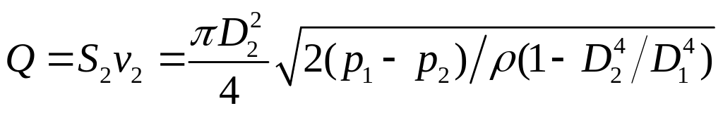 де D1 і D2 – діаметри трубки у відповідних перерізах.