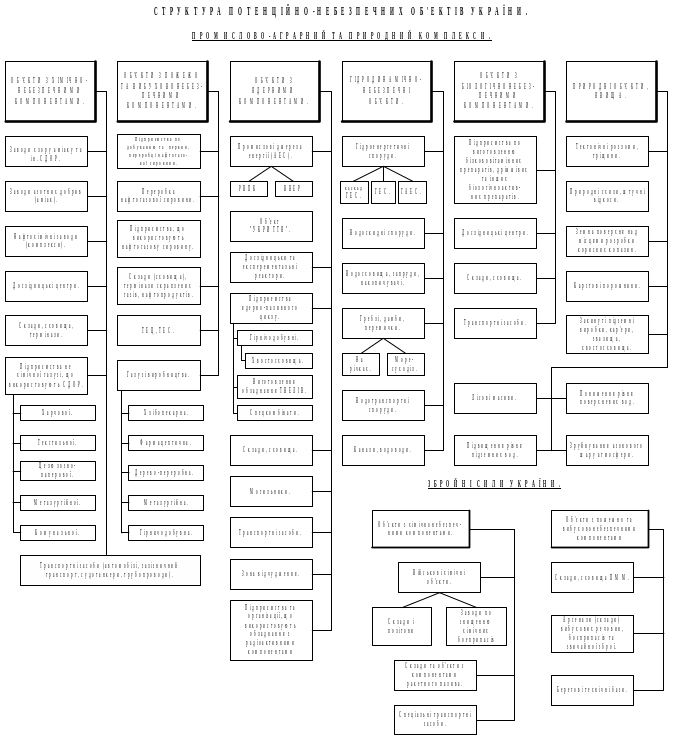 - радіаційно-небезпечні об’єкти, 15 енергоблоків атомних станцій (12 з яких мають завершений у 20012-2014рр термін експлуатації), об’єкт «Укриття», понад 3 тисячі об’єктів в яких використовуються джерела іонізуючого випромінювання;