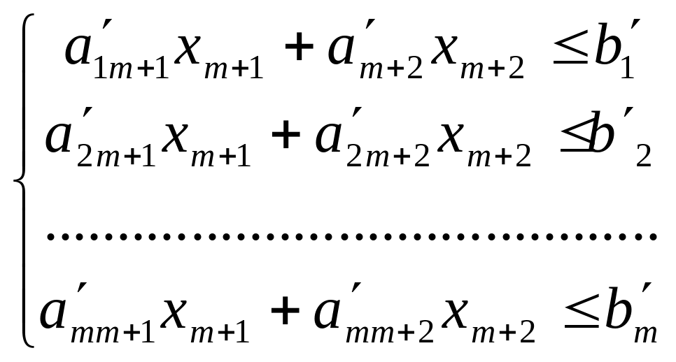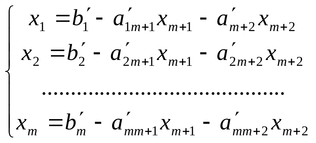 Проводимо методом Жордана-Гаусса m виключень, тоді система обмежень (5) приймає вигляд: