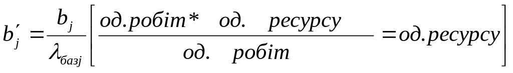 1. вибір базового ресурсу і розрахунок нормованих продуктивностей ресурсів αi: