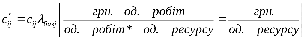 IV. Перетворення оптимального розв’язку транспортної задачі в оптимальний розв’язок розподільчої задачі, причому перехід виконується за формулою: