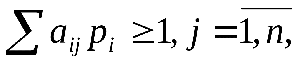 Таким чином, маємо задачу ЛП, розв’язуючи яку, отримаємо значення pi, за допомогою яких шляхом оберної підстановки визначимо оптимальні значення ймовірностей, що складають оптимальну мішану стратегію.