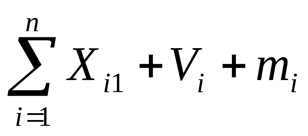 Х1=х11+х21+х31+…+хn1+v1+m1