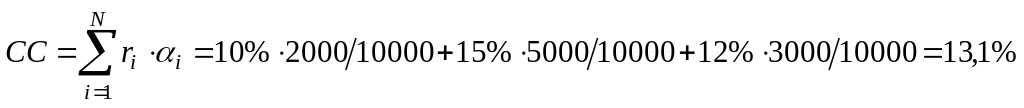 Capital Cost (CC, цена капитала) – уровень процентной ставки, определенный с учетом структуры и удельного веса всех источников финансирования по формуле средней арифметической взвешенной: