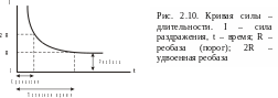 Роль длительности действия раздражителя. Кроме силы раздражителя и быстроты ее изменения, важное значение имеет длительность действия раздражителя (рис. 2.10). В сверхпороговом диапазоне, чем больше сила раздражителя, тем меньше время его дейст-