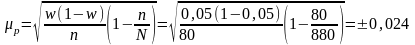 Задание Т-9.2. В процессе осуществления технического контроля из партии готовой продукции методом случайного бесповторного отбора было проверено 80 изделий, из которых 4 оказались бракованными. С вероятностью 0,683 определить пределы бракованной продукции во всей партии.