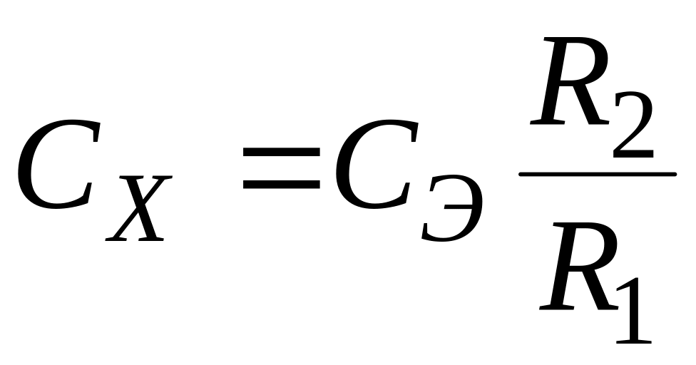 Схема лабораторной установки приведена на рис.1. Источником переменного напряжения в данной установке является понижающий трансформатор. Сопротивление R1 сделано постоянным, значение его указано на установке. Для измерения ёмкости необходимо с помощью магазина сопротивлений R2 подобрать такое сопротивление, чтобы привести мост в равновесие. При этом искомая ёмкость определяется по формуле (8).