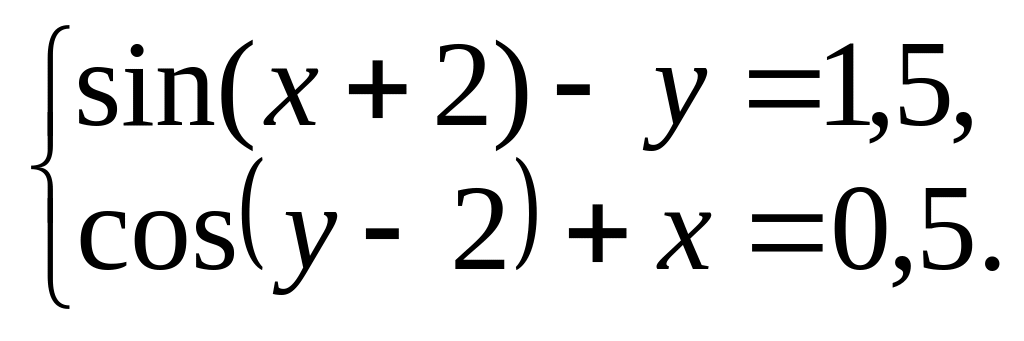 Решить систему нелинейных уравнений блочным методом. Начальные значения корней выбрать самостоятельно.