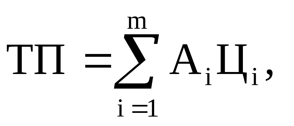 где Аi – план выпуска продукции в натуральном выражении; Цi – действующая цена i-го изделия; i – вид продукции; m – количество видов продукции, выпущенной предприятием.