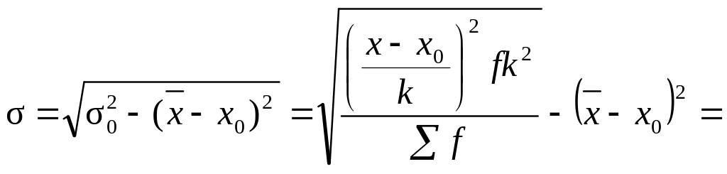 Пример. В таблице 7 приведены данные испытания крепости шерстяной пряжи. Требуется определить среднее квадратическое отклонение выборочной совокупности от ее генеральной. В расчете использовать способ моментов.