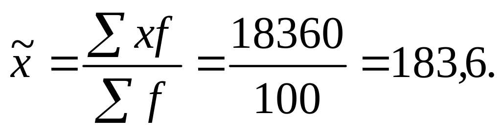 Средняя выборочная (средняя крепость нити выборочной совокупности) равна 183,6 г: