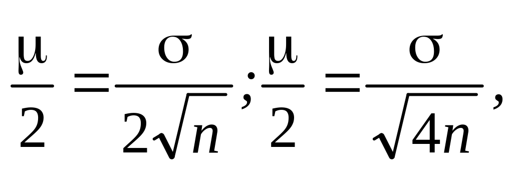 При проведении выборочного наблюдения часто возникает необходимость предварительного определения численности выборочной совокупности. Предположим, что мы хотим получить ошибку выборки вдвое меньшую, чем мы получили, т.е. ставим определенные условия: величина должна быть равна 2,15 вместо 4,30. Чтобы добиться уменьшения ошибки вдвое, нужно увеличить число наблюдений. Но на какое количество? Формула средней ошибки выборки позволяет ответить на этот вопрос: